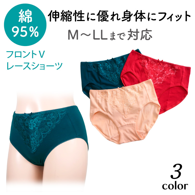 〈綿95%〉フロントVレースショーツ CS-655